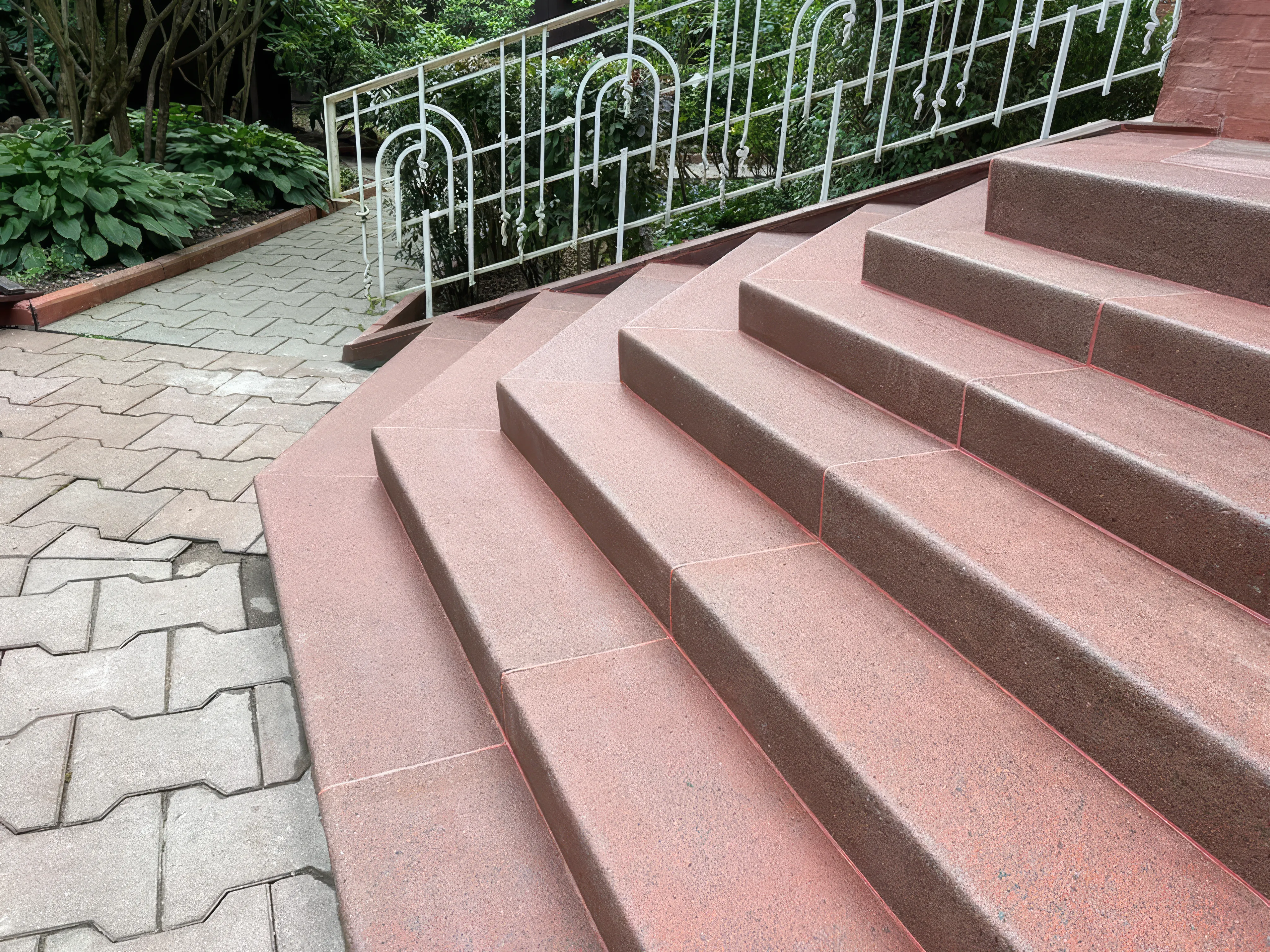 Специально подготовленная бетонная смесь создается с использованием дисперсного армирования и добавления диабазовой каменной крошки. Формирование тонкостенных конструкций плит и густоармированных Г-образных накладок на ступени происходит с применением 3D форм из жестких смесей с максимально низким В/Ц соотношением.