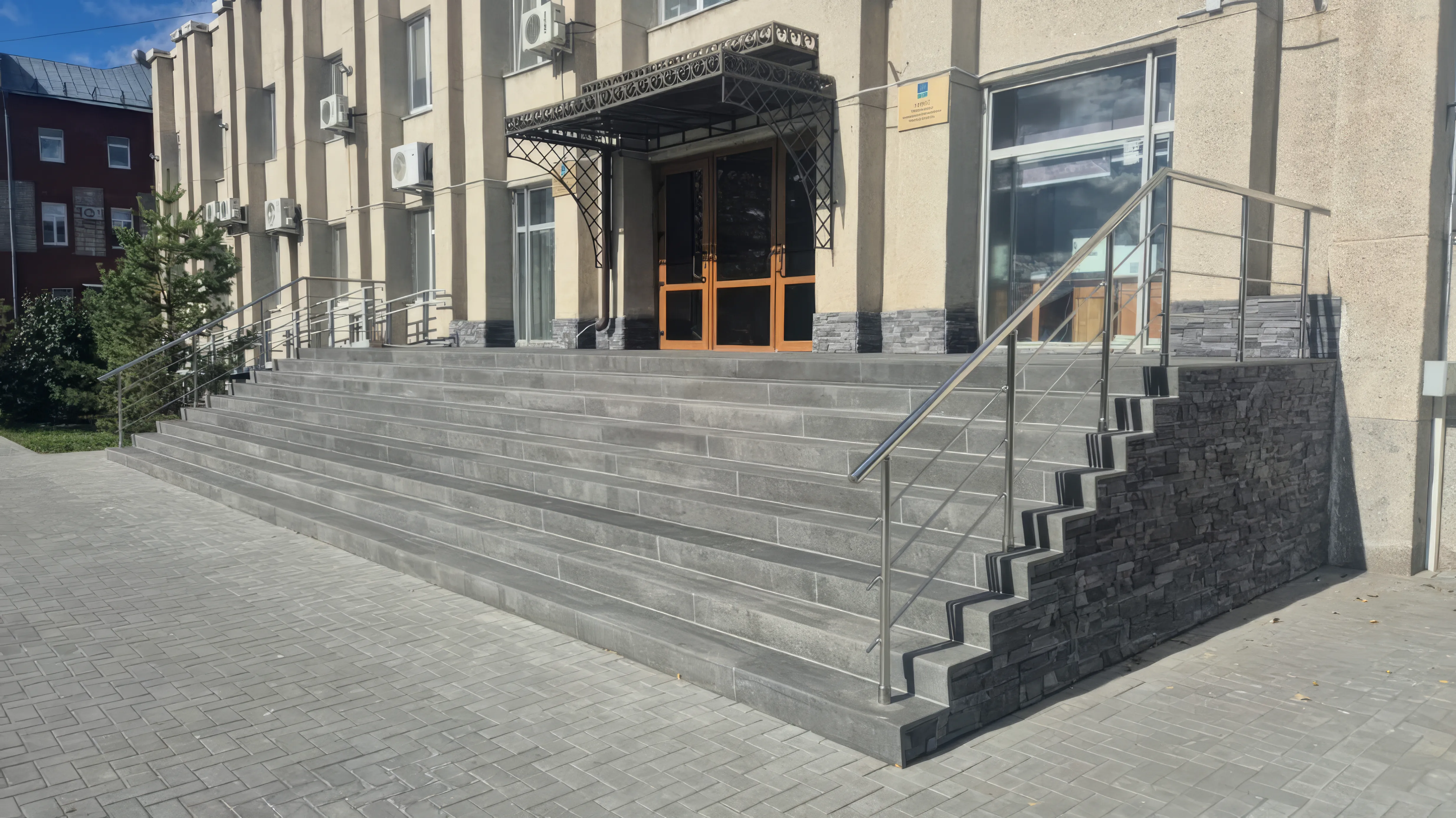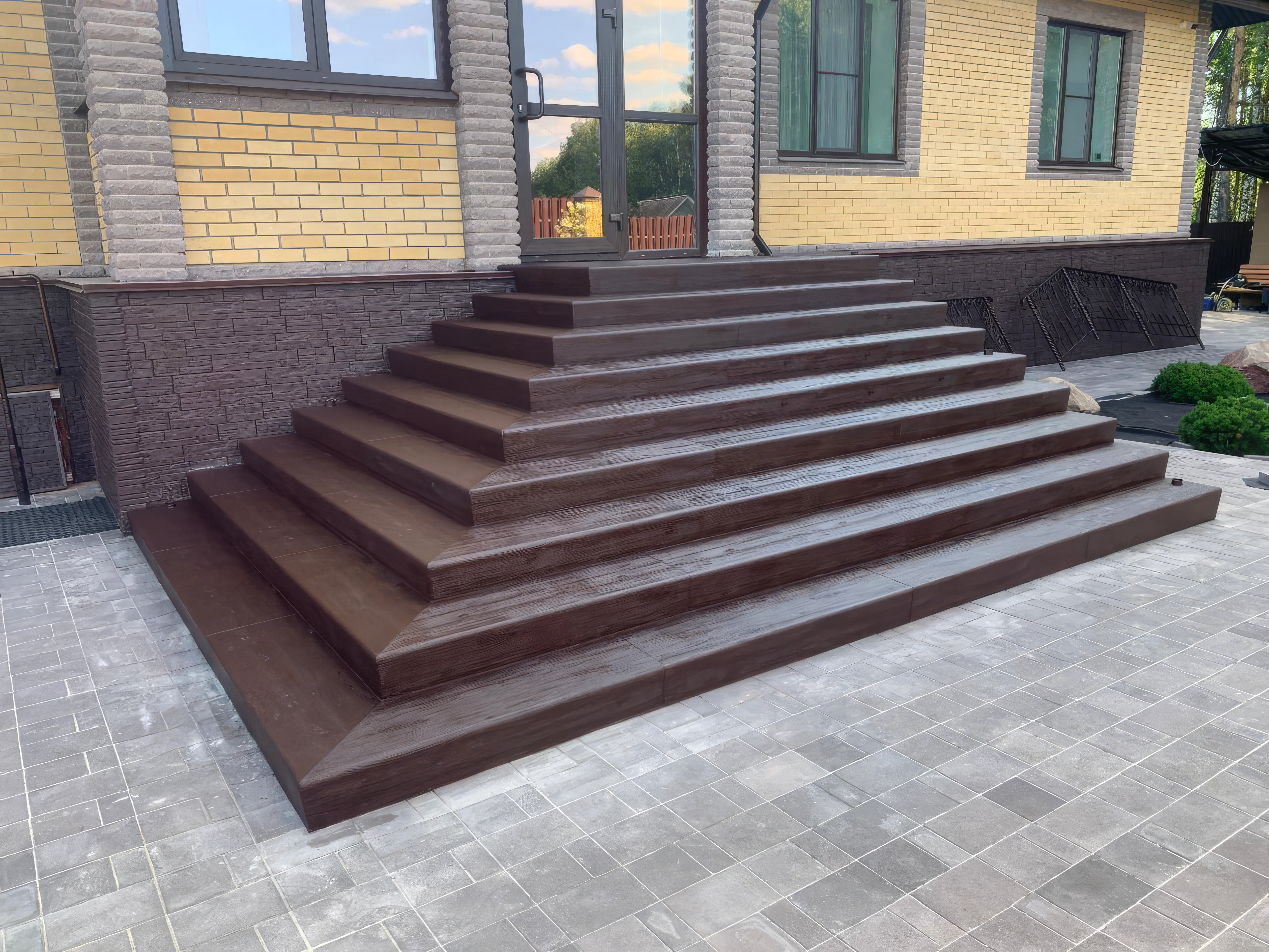 Ступени С3 выглядят современно и презентабельно. Широкий выбор рельефов и цветов позволяет вписать облицовку в любой архитектурный стиль — от классики до минимализма. Крыльцо становится визитной карточкой здания.